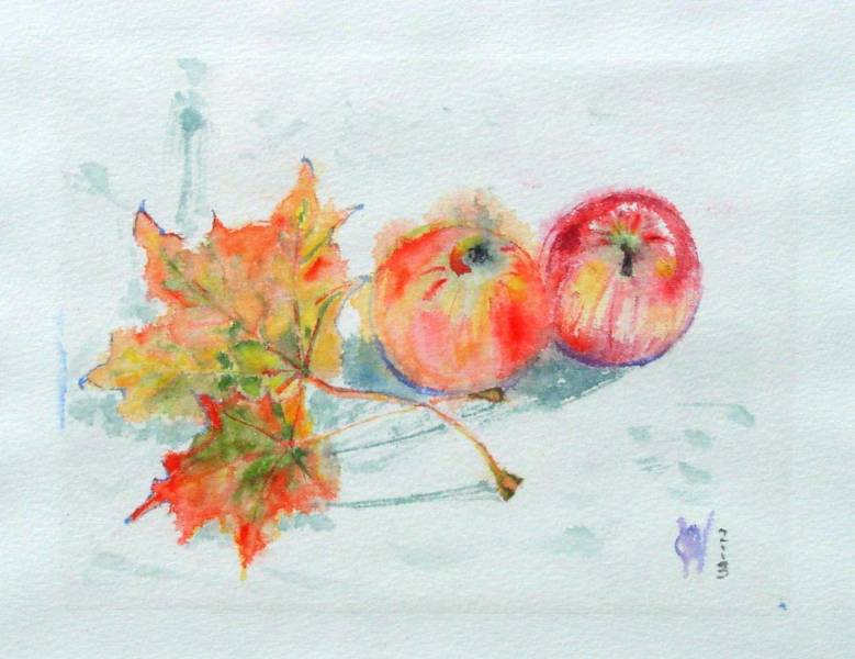 ![]() Ahornblätter und Äpfel Aquarell auf Chinapapier |
