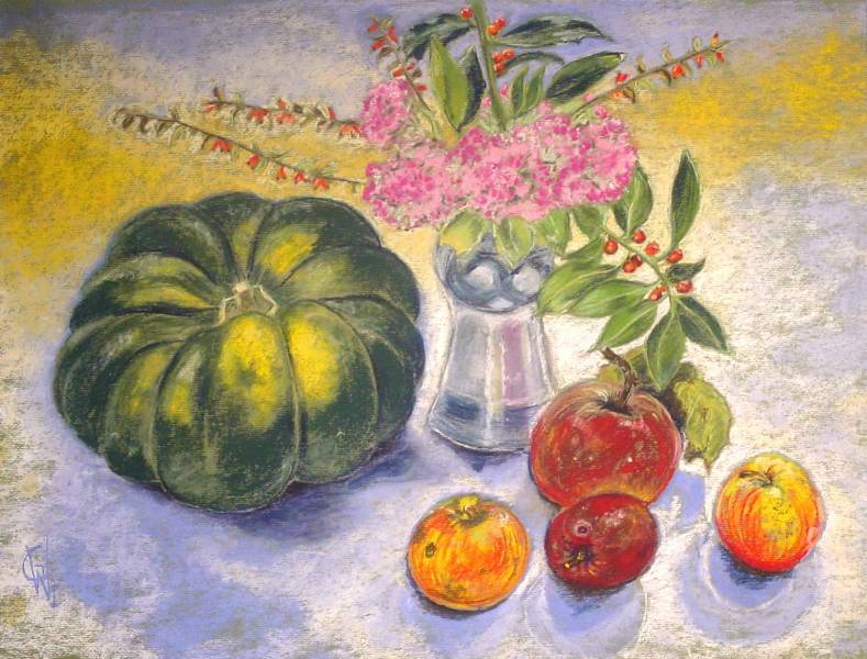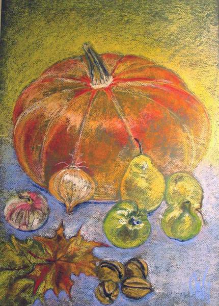 ![]() Kürbis und Sonnenblume verk. Pastellkreide |